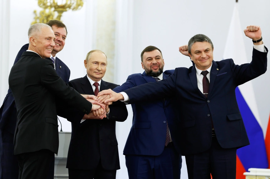 Hôm 30/9, Tổng thống Nga Vladimir Putin và lãnh đạo 4 vùng ly khai Ukraine ký thỏa thuận sáp nhập những khu vực này vào Nga. Ông khẳng định việc sáp nhập 4 tỉnh Ukraine dựa trên lựa chọn của người dân tại đây.