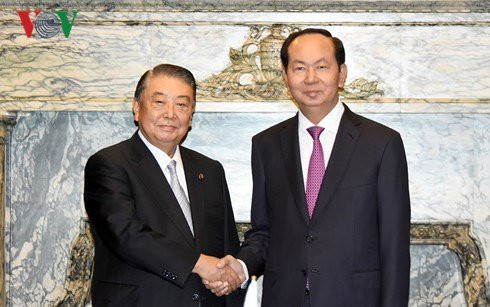 Chủ tịch nước Trần Đại Quang hội kiến Chủ tịch Hạ viện Nhật Bản Tadamori Oshima. (Ảnh: VOV)