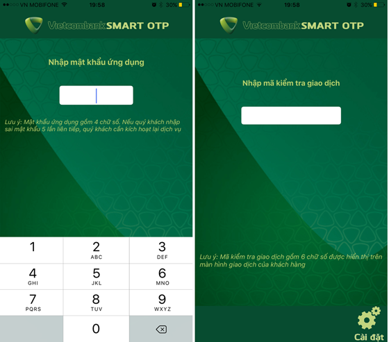 Giao diện ứng dụng Smart OTP của Vietcombank