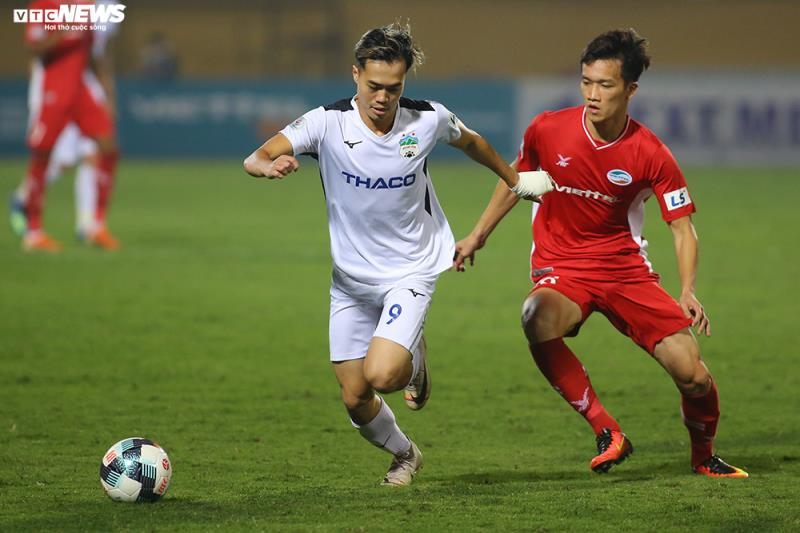HAGL (áo trắng) khiến Viettel vất vả giật lại 1 điểm.