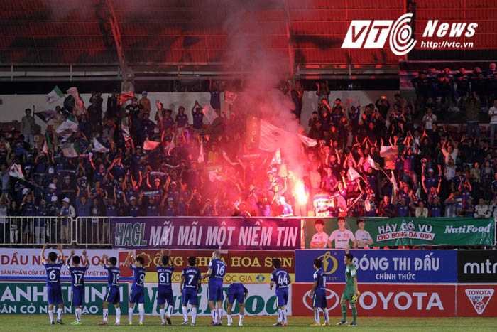 Kết thúc trận đấu HAGL vs SHB Đà Nẵng, trên khu vực khán đài B sân Pleiku đã xuất hiện pháo sáng. Đây là điều VFF nghiêm cấm và dù là lần đầu tiên để hiện tượng này xảy ra, HAGL chắc chắn sẽ vẫn bị phạt hành chính.