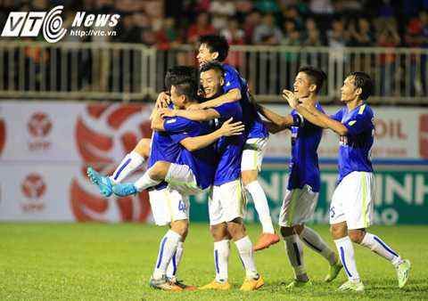 | Niềm vui vỡ òa của các cầu thủ HAGL (Ảnh: Minh Trần) |