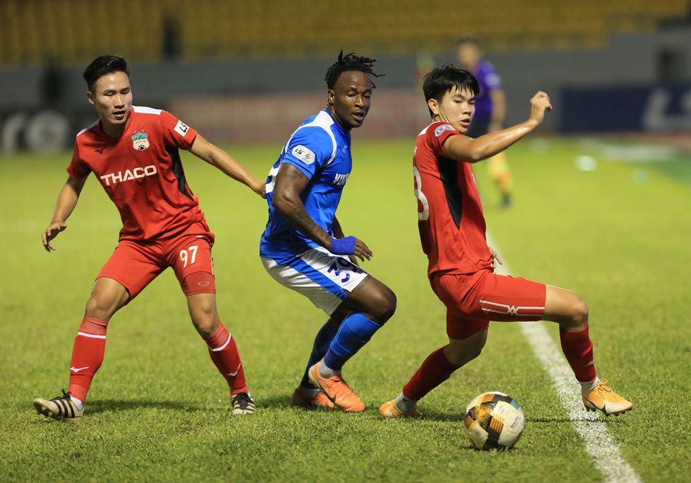 HAGL (áo đỏ) không còn gì để chờ đợi, hy vọng ở những trận đấu còn lại của giai đoạn 2 V-League 2020.