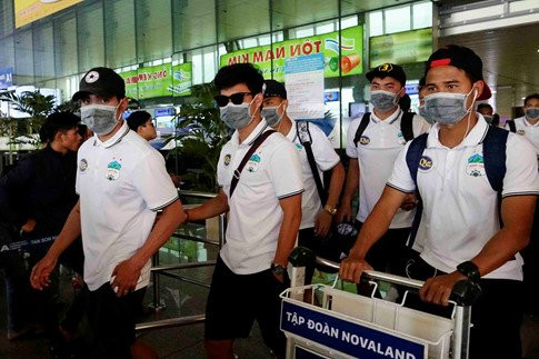 Cầu thủ HAGL bịt khẩu trang. (Ảnh: Thanh Niên)