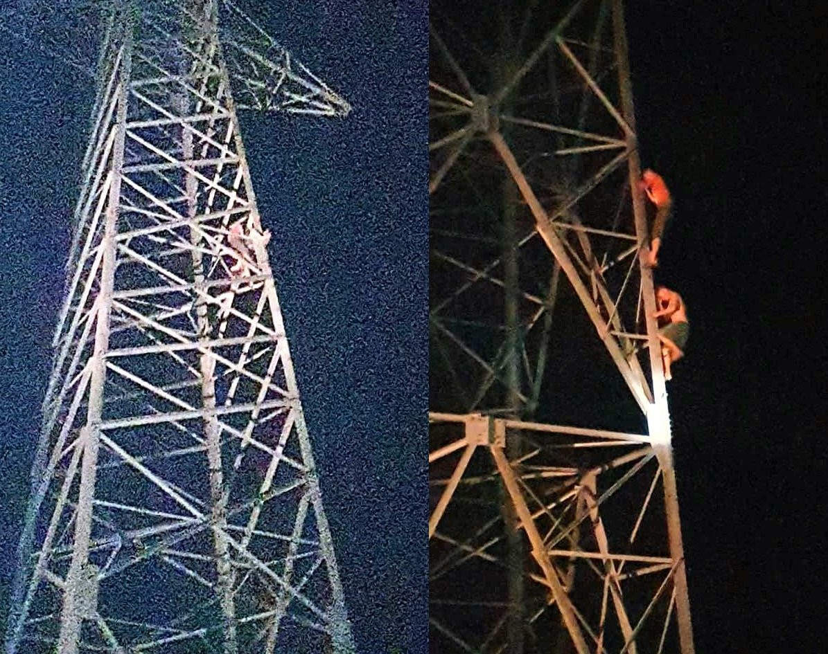 Hai anh em trèo lên cột điện cao thế lúc nửa đêm.