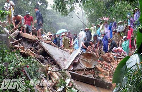 (VTC News) - Sau gần 16 giờ liên tục tìm kiếm, tối ngày 28/7, lực lượng chức năng đã tìm thấy thi thể hai bà cháu bị vùi lấp trong đống đổ nát do mưa lũ san phẳng.