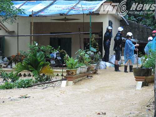 | Nhiều nhà dân bị đất đá, nước mưa đổ xuống, lấp cả cửa ra vào - Ảnh MK |