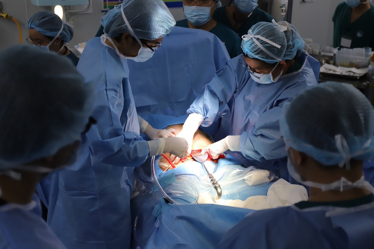 Cuộc phẫu thuật diễn ra lúc 9h ngày 31/5. Hai 2 ê-kíp phẫu thuật bao gồm khoa Sản và khoa Nhi phối hợp nhịp nhàng giúp khai thông đường thở duy trì hô hấp tuần hoàn cho trẻ ngay khi chào đời.