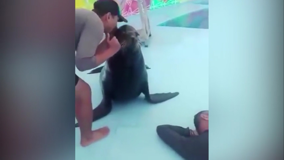 Hải cẩu rón rén lại gần vị huấn luyện viên đang ngủ, bày trò trêu chọc anh rồi đắc ý cười ha ha.