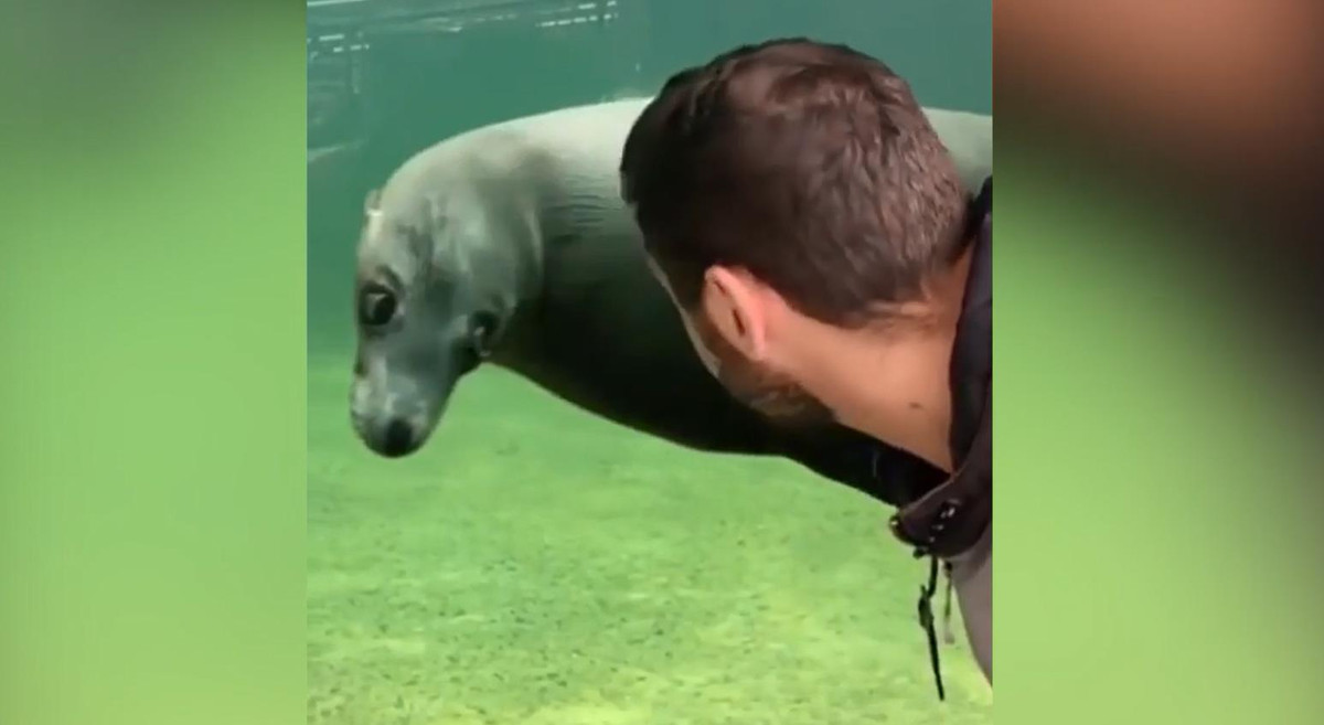 Thấy trai đẹp ngoài bể bơi, hải cẩu nhẹ nhàng lướt qua và không quên ngoái đầu nhìn đắm đuối.
