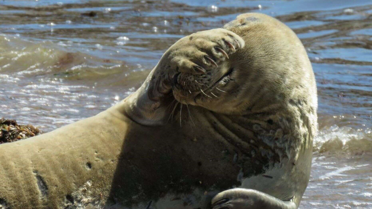 Khoảnh khắc con hải cẩu lấy tay che mặt gây sốt. (Ảnh: SWNS)
