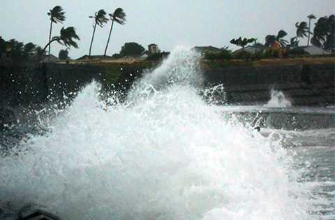 | Sóng tại khu vực biển ven đảo Lý Sơn đang có gió cấp 6 giật cấp 7, sóng to gió lớn, nên việc tìm kiếm 2 ngư dân mất tích rất khó khăn |