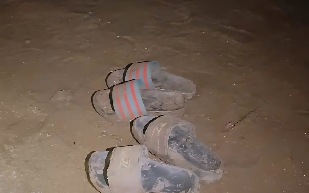 Hai đuôi dép của 2 cháu bé để trên bờ rồi mất tích.