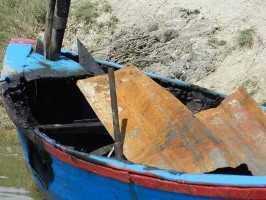Chiếc ghe của ông Tiến chỉ còn khung sắt và máy nổ