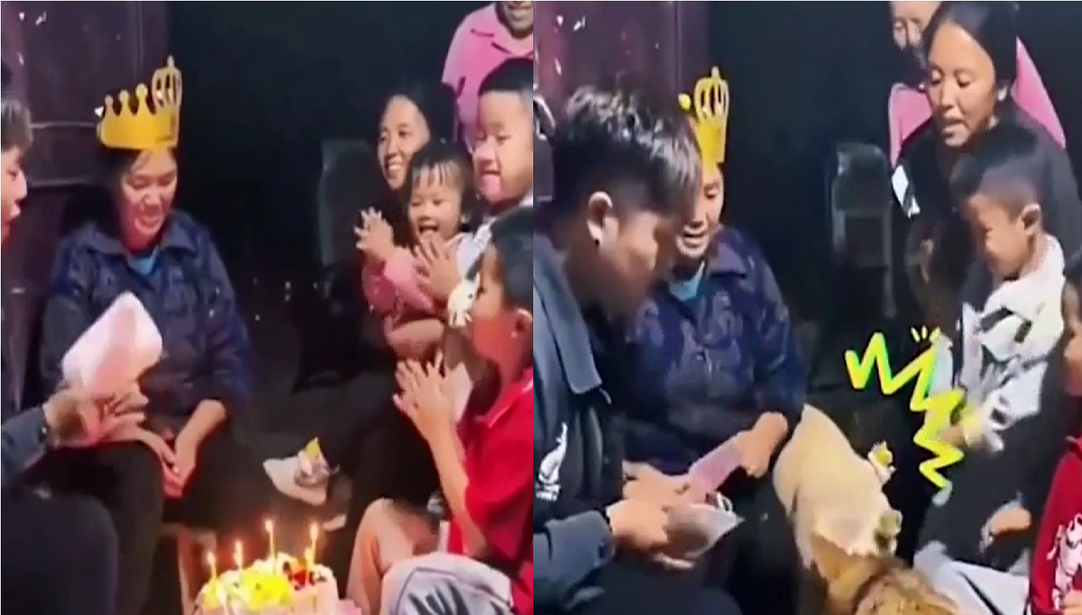 Lợi dụng bóng tối lúc thổi nến, hai chú chó từ đâu lao vào chén gọn bánh gato làm cả nhà được phen vừa bất ngờ vừa tức giận.