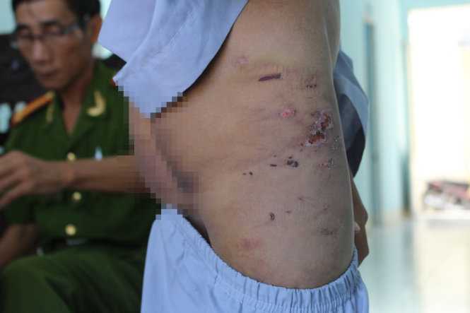 Em Nguyên cũng bị thầy Đồng đánh để lại nhiều vết thương trên người. Kiểm tra trên mông và hai chân của Nguyên có hàng chục vết thương đã khô.
