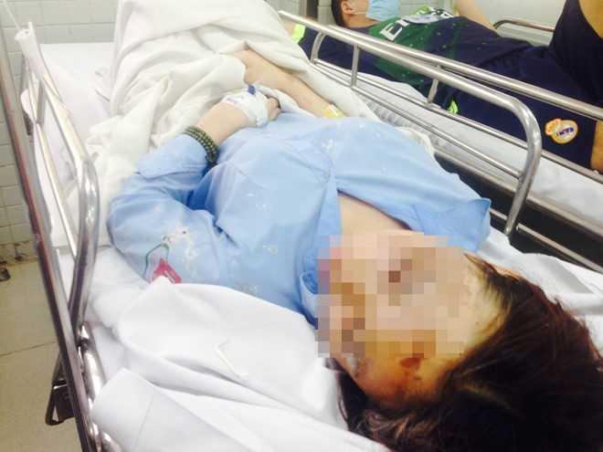 | Nữ sinh bị tạt axít đang được cấp cứu. Ảnh: K.T |