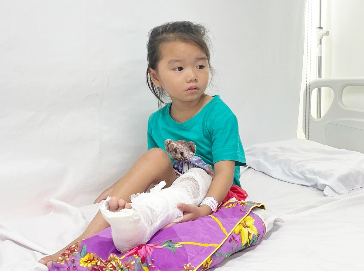 “Các bác sĩ cố hết sức để bảo tồn chân trái cho cháu, nhưng trước những tổn thương quá nghiêm trọng, gia đình đã đưa ra nguyện vọng mổ cắt cụt 1/3 trên cẳng chân trái cho con”, bác sĩ Tân nói.