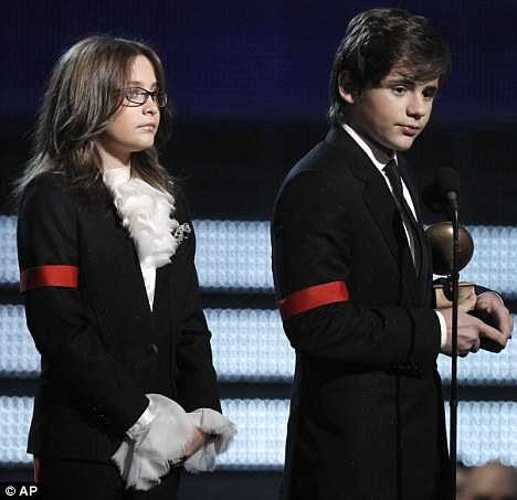 Bước lên sân khấu trong bộ đồ tây thật lịch sự, cậu con trai cả Prince chững chạc hơn hẳn với mái tóc hoàn toàn khác so với 7 tháng trước khi Michael Jackson mới qua đời nhưng lại có vẻ trầm tĩnh trong khi bé gái