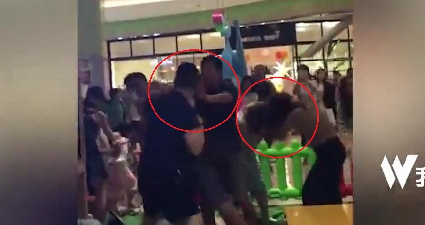 Vụ việc xảy ra ngày 7/10 tại một trung tâm thương mại ở Longhua, Thâm Quyến, Trung Quốc. Clip ghi lại cuộc hỗn chiến trong khu vui chơi dành cho trẻ con. Hai bà mẹ lao vào túm tóc nhau, trong khi các ông bố hùng hổ đấm, đá đối phương túi bụi.