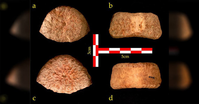 Đốt sống vừa khai quật ở các góc chụp khác nhau. (Ảnh: Tiến sĩ Alon Barash/ Đại học Bar-Ilan)