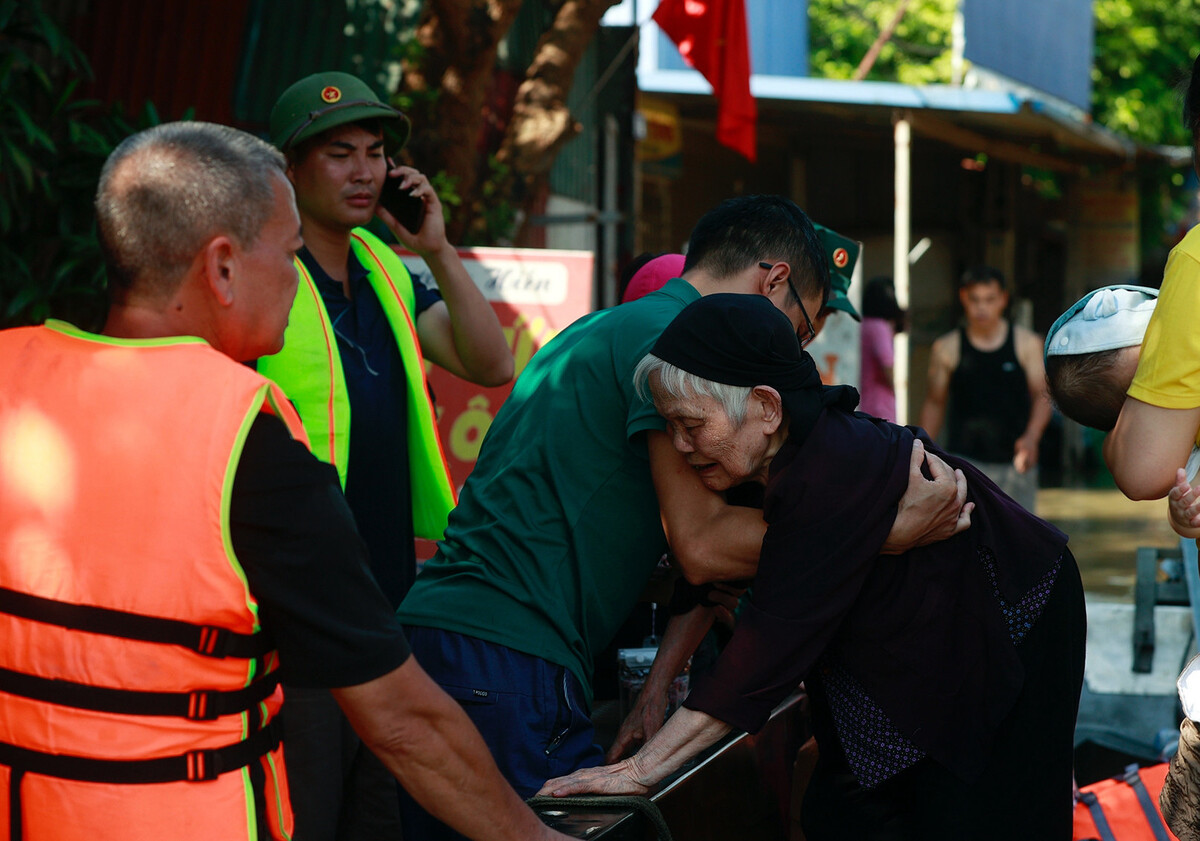 “Có gia đình của cặp vợ chồng với 4 trẻ nhỏ và 1 cụ bà đang ốm nặng. Nước dâng cao đột ngột khiến họ loay hoay trở tay không kịp. Nhận được thông tin,10h30 sáng, đội cứu trợ của thôn đã chèo thuyền đến đón, kịp thời đưa cụ bà đến Bệnh viện đa khoa Sóc Sơn cấp cứu”, ông Thống chia sẻ.