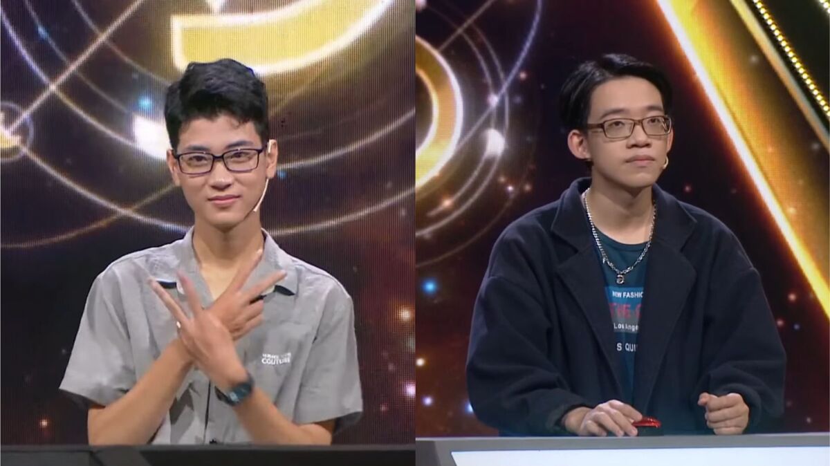 Hoài Bảo (bên trái) và Khôi Nguyên (bên phải) trong "Đấu trường thông thái".