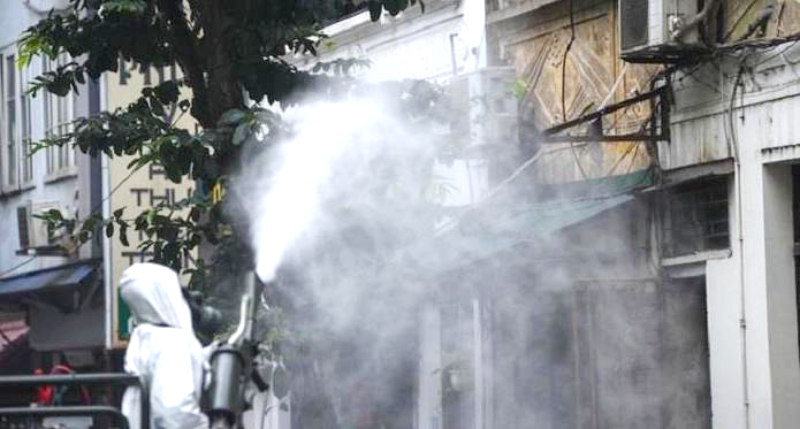 Các khu vực có người nhiễm Covid-19 đều được phun khử trùng. (Ảnh: Duy Hiệu)