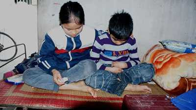 | Hai chị em Nguyễn Phạm N.Q (con gái lớn) và Nguyễn Phạm H.K (con trai út) từng bị hành hạ nhiều năm |