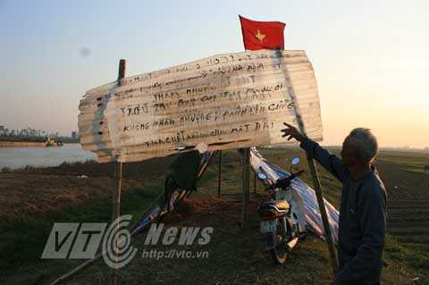 | Người dân viết khẩu hiệu: "Thà chết chứ không chịu mất đất" - Ảnh Minh Khang |