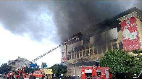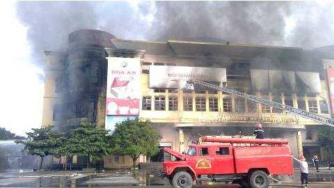 | Khói lửa bao trùm trung tâm thương mại Hải Dương. |