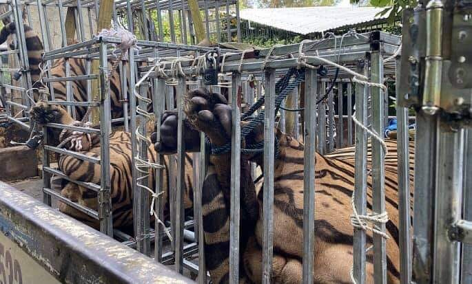 Những con hổ bị người dân nuôi nhốt trái phép trong nhà.