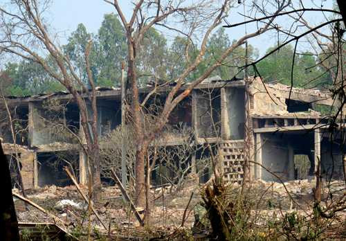 | Vụ nổ xảy ra, khiến nhiều nhà kho, xưởng sản xuất của nhà máy bị phá hủy. Ảnh: Bá Đô |