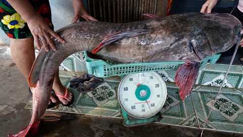 | Người trong quán bất ngờ khi thấy cá có trọng lượng lớn |