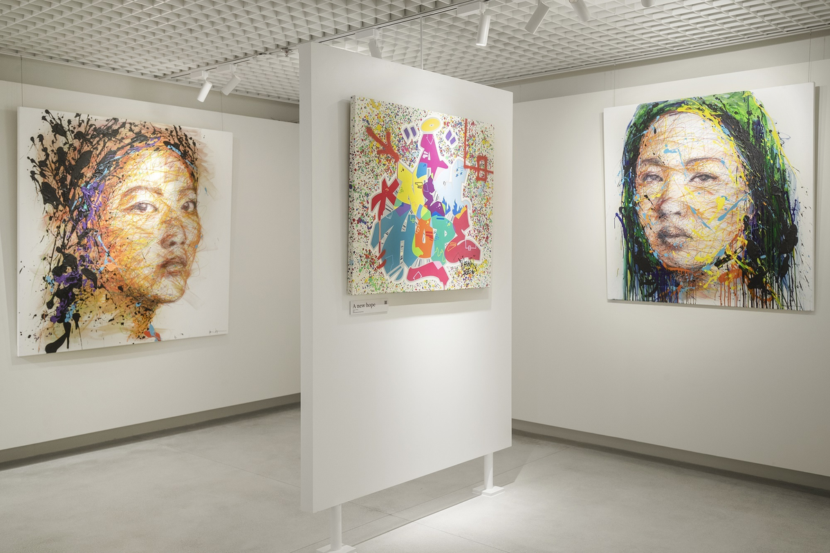 Tác phẩm "A New Hope" (chính giữa) sáng tác bởi nghệ sĩ graffiti Cyril Kongo bao quanh bởi hai tác phẩm trong BST ‘Woman’ của nghệ sĩ Hom Nguyen.