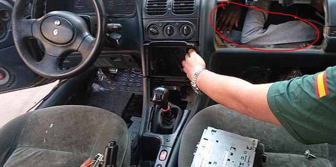 Cảnh sát biên giới Tây Ban Nha phát hiện một người đàn ông tuổi ngoài hai mươi nằm co quắp sau bảng điều khiển xe hơi, cố gắng xâm nhập vùng đất Melilla của nước này. Các quan chức địa phương cho biết, ba phương tiện bị giữ và bốn trường hợp người tị nạn bị phát hiện khi đang tìm cách vượt biên vào châu Âu trong một ngày cuối tuần trước.