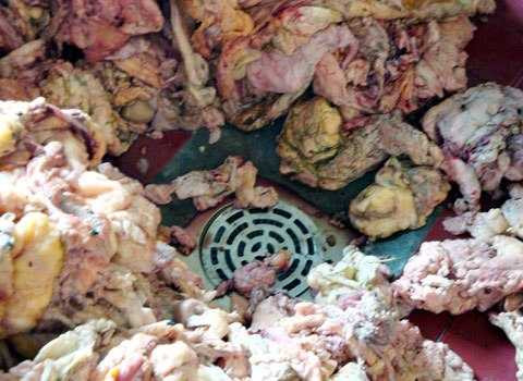4. Lòng, mỡ, da động vật la liệt trên miệng cống