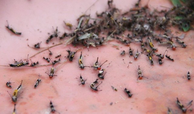 Hãi hùng hàng ngàn con sâu róm tấn công nhà dân ở Bình Dương