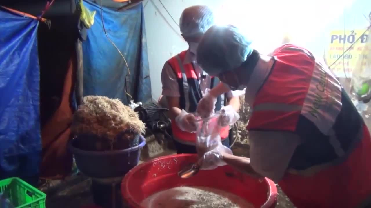 Ngày 26/4, Công an TP.HCM kiểm tra và phát hiện 2 cơ sở có hành vi ngâm bắp chuối bào vào hóa chất, nằm gần chợ đầu mối nông sản Thủ Đức.