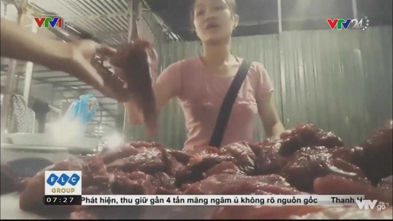 Thịt lợn nái được phù phép thành thịt bò bằng cách bôi chất lỏng màu đỏ nhơ nhuốc, thủ đoạn này tinh vi tới mức chính người bán cũng khó lòng phân biệt nổi thật giả.