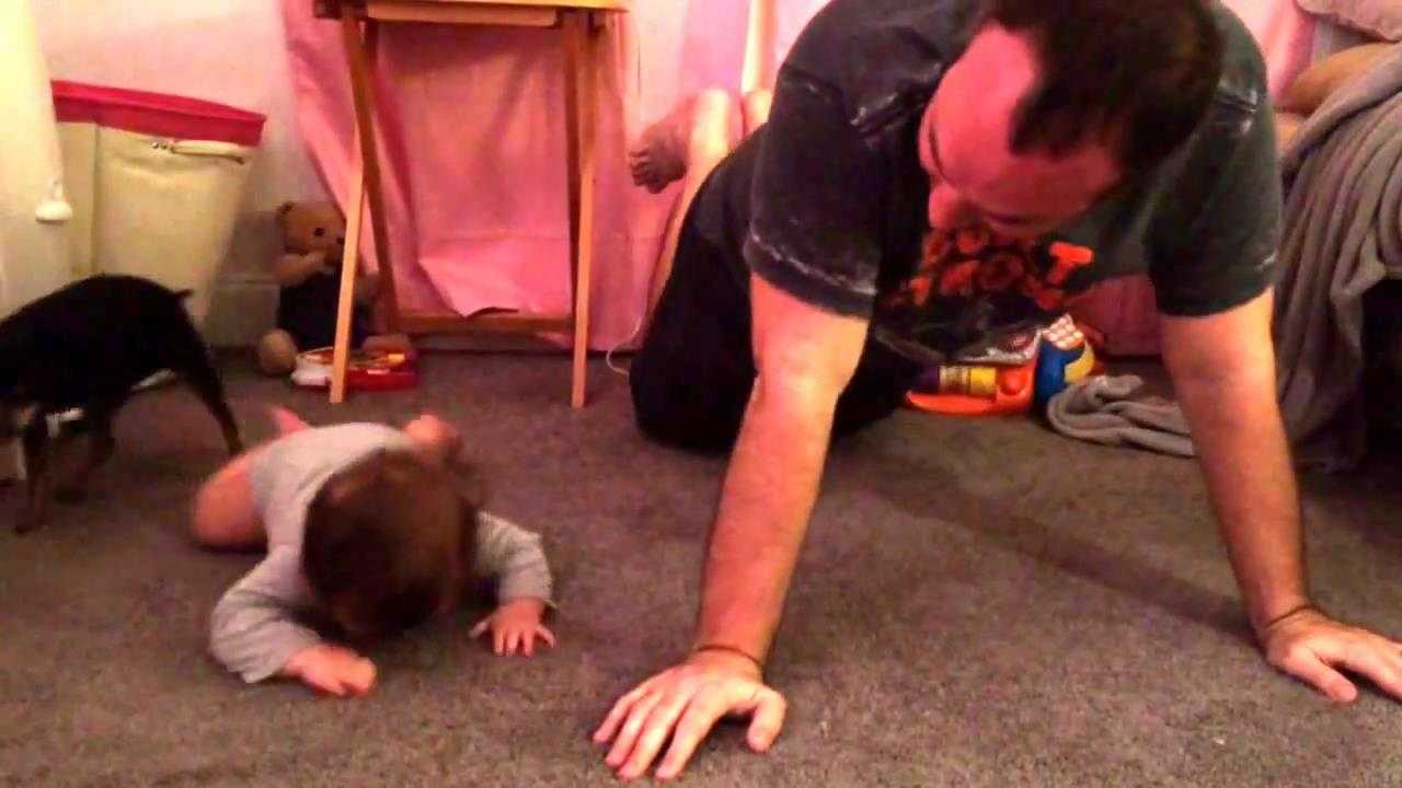 Em bé mới 7 tháng tuổi đã biết làm theo các động tác của ông bố.