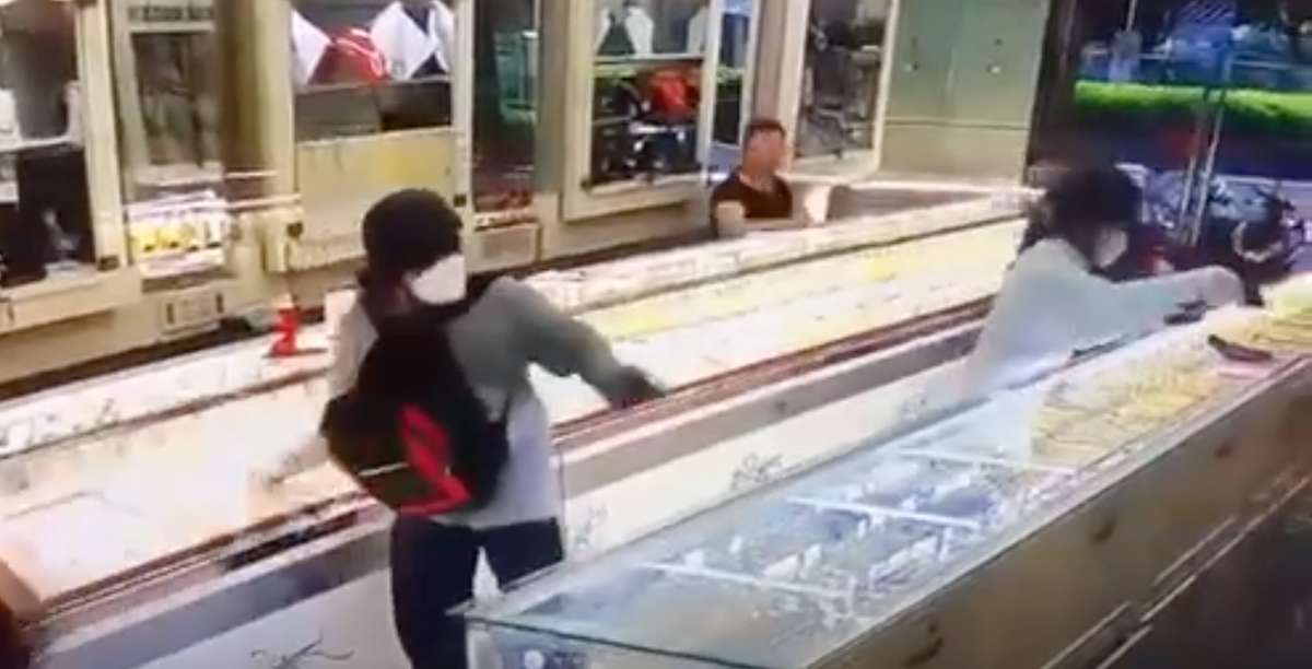 Khi thấy 2 kẻ cầm vật giống súng xông vào, đập vỡ tủ kính, nhiều người trong tiệm chạy tán loạn. Một tên dùng búa đập vỡ tủ kính lấy vàng cho vào balô, tên còn lại cầm vật giống súng chĩa vào phía trong nhà canh chừng, uy hiếp.