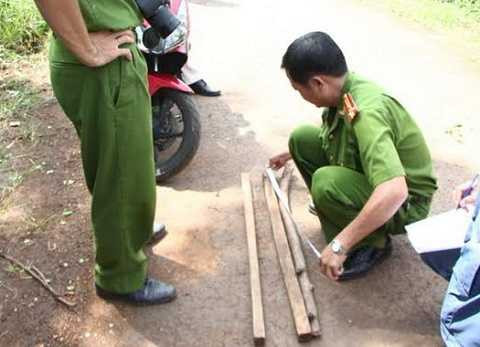 Ghi nhận tại hiện trường, giữa đường bê tông liên thôn 2 và 3 có một xe máy đã bị đốt cháy rụi, có nhiều gậy gộc, một bao tải được đặt trên xe máy bị đốt. Trong bao gồm một ná cao su bắn đá, nhiều gói bột ớt, băng keo đen, một dây thòng lọng có cán cầm được độ chế có giắc nối điện, một cục pin được bọc kín có ổ cắm...