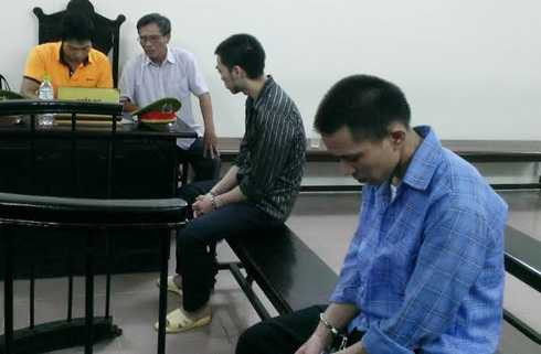 | Hai bị cáo Long và Hiển tại phiên tòa |