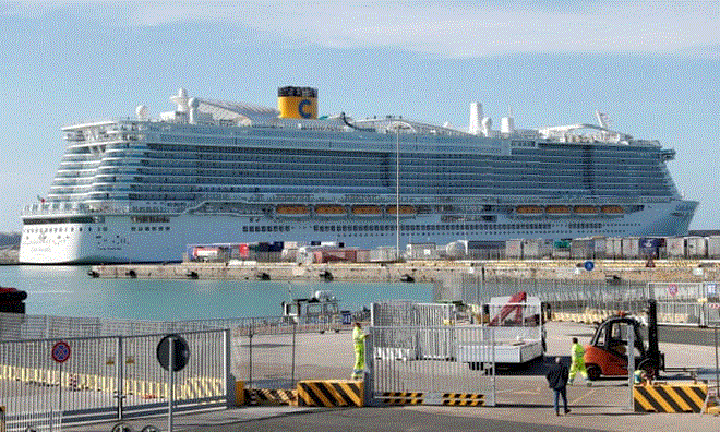 Con tàu du lịch chở theo 6.000 hành khách đang đỗ tại cảng Civitavecchia. (Ảnh: Reuters).