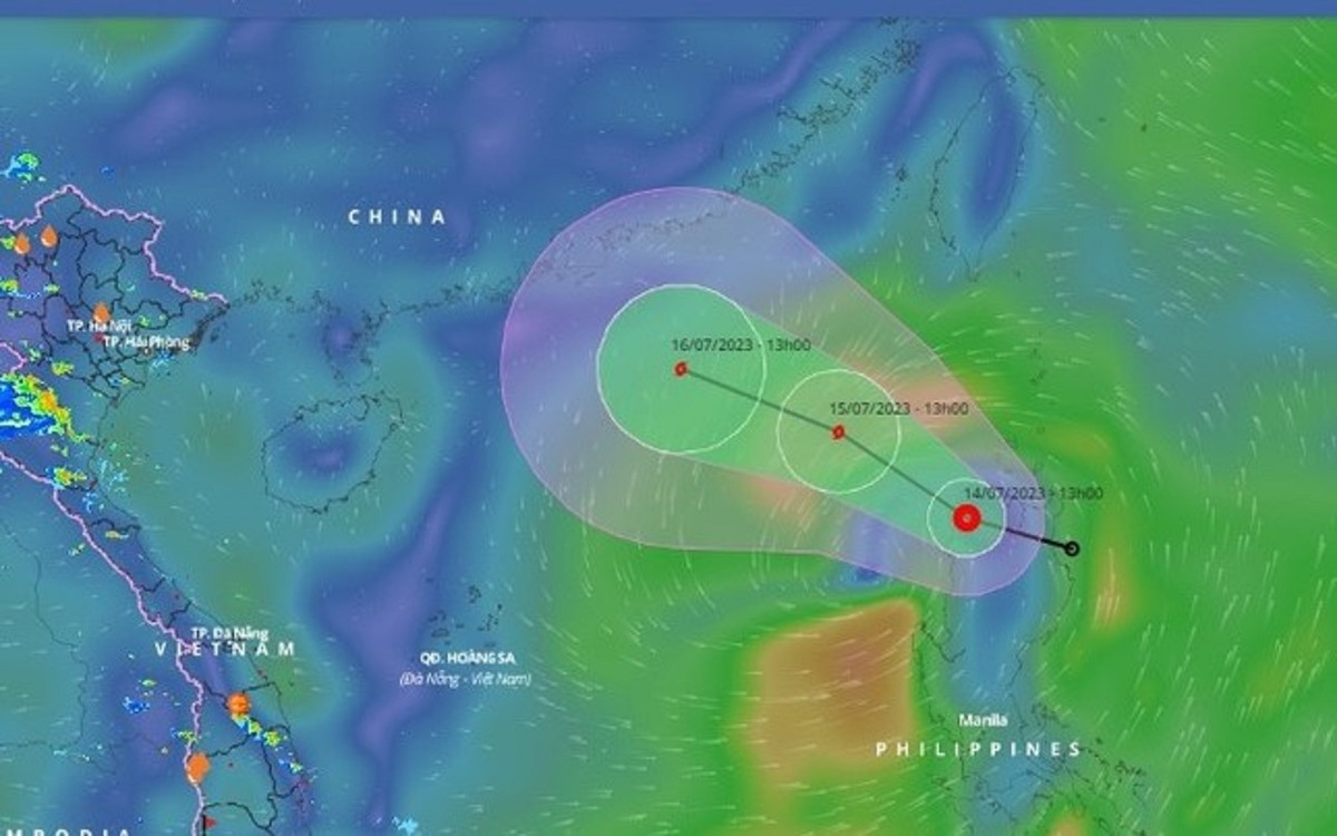 Vào 13 giờ chiều 14/7, tâm áp thấp nhiệt đới trên khu vực phía Bắc đảo Luzon của Philippines với sức gió mạnh nhất vùng gần tâm áp thấp nhiệt đới mạnh cấp 6 (39-49km/giờ), giật cấp 8.