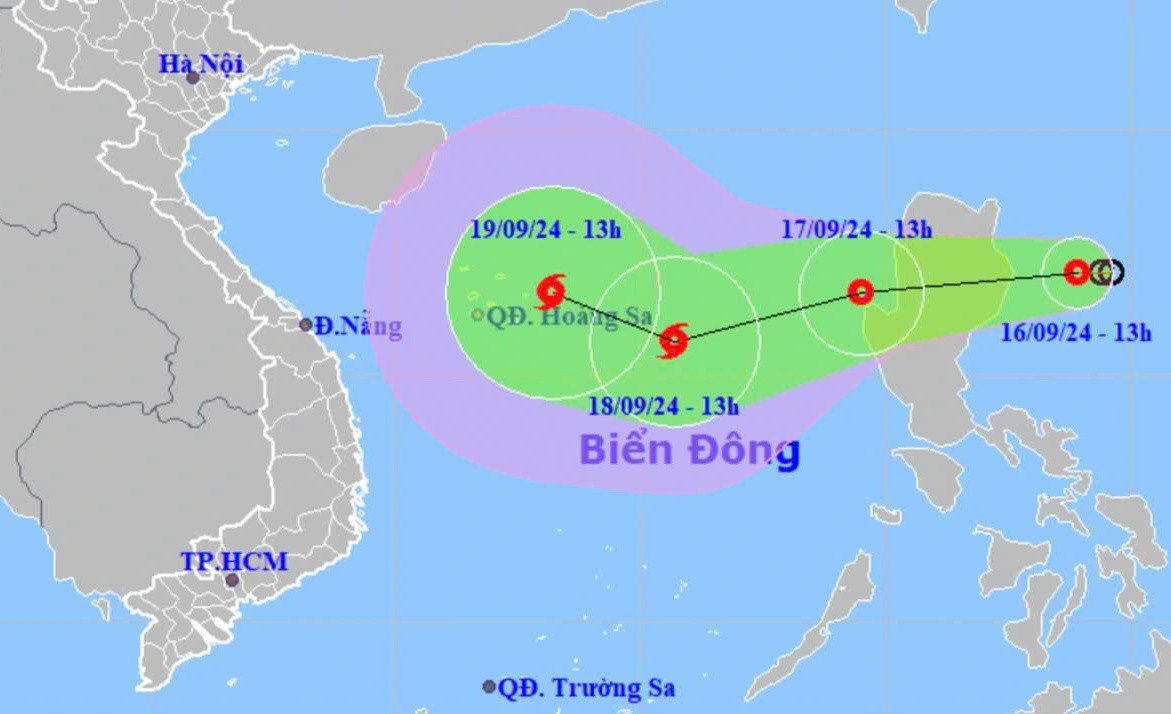 Theo Trung tâm Dự báo Khí tượng thủy văn quốc gia, lúc 13h ngày 16/9, vị trí tâm áp thấp nhiệt đới vào khoảng 17,1 độ Vĩ Bắc; 123,9 độ Kinh Đông, trên vùng biển phía Đông đảo Lu Dông (Philippines).