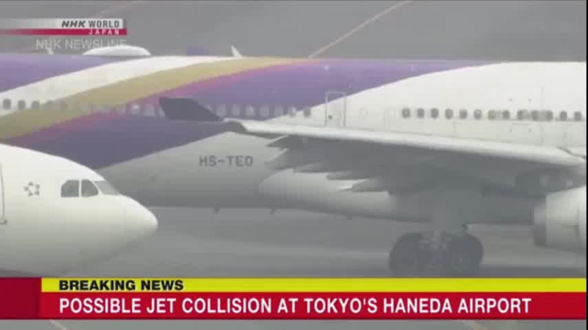 Hình ảnh do đài NHK ghi lại cho thấy, máy bay của EVA Air và Thai Airways ở trên đường băng. Một phần cánh của máy bay Thai Airways dường như bị gãy và rơi xuống gần đường băng.