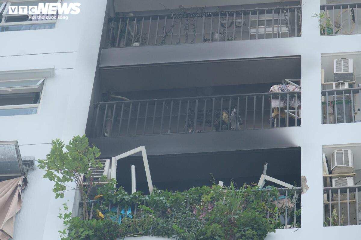 Hỏa hoạn làm nhiều tài sản bên trong căn hộ ở tầng 10 hư hại nặng. Hai căn hộ liền kề nơi xảy ra hỏa hoạn bị ảnh hưởng, tường ám khói đen.