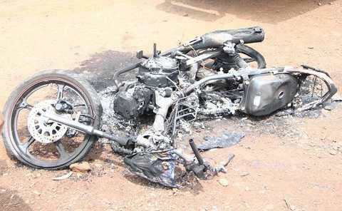 | Xe máy hai nghi can trộm chó bị đốt cháy rụi |